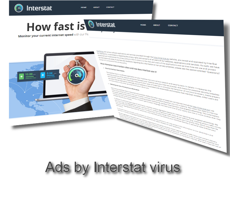 Une fois installé sur votre ordinateur, Interstat vous fournira une expérience non désirée. Comme il est répertorié comme un adware, il inondera vos navigateurs Internet avec différentes publicités et rendra votre navigation sur le Web comme un cauchemar. Ces annonces fournies par Interstat peuvent être affichées sous toutes sortes de formes différentes, telles que, bannière, pop-up ou nouvelles annonces de l’onglet ou dans le texte. Cependant, il existe un moyen de dire si la publicité est légitime ou délivrée par ce logiciel malveillant, parce que vous pouvez remarquer un slogan « Ads by Interstat » à proximité de toute publicité. Il est conseillé d’éviter les publicités affichées par ce virus, car cliquer sur l’une d’entre elles pourrait entraîner que d’autres logiciels malveillants soient installés sur votre ordinateur.