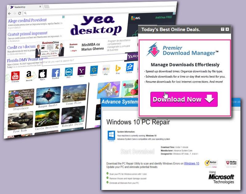 Des publicités en ligne, mensongères, provenant soit d’arnaqueurs ou d’escrocs, peuvent également être mis en avant par le virus Yeadesktop.com. Ne soyez pas trompé en visitant les sites Web malveillants qui pourraient afficher du contenu fabriqué. Par exemple, les services de support technique faux pourraient bloquer temporairement l’accès au navigateur / périphérique et vous inviter à appeler un service d’assistance téléphonique spécifique. Ceci est l’une des façons que les fraudeurs peuvent essayer pour vous prendre de l’argent : en offrant une sorte d’outil de sécurité qui est en fait inutile.
